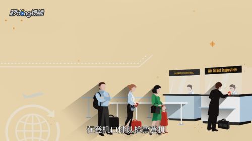 6检票登机:待登机时间到达,在登机口排队检票登机,到飞机上找到座位,系好安全带。