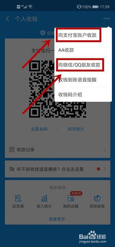 单击省略号后会出现下拉菜单,在这里可以选择【向支付宝账户收款】或【向微信/QQ朋友收款】。