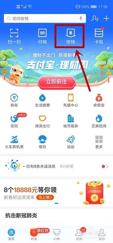 打开支付宝软件,在主页面顶部找到【收钱】模块并单击一下。