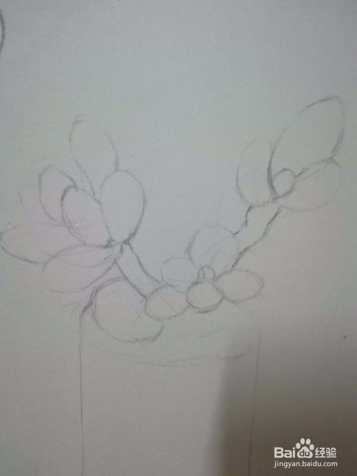用简单长线条大概概括出盆栽的大体轮廓。