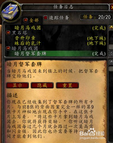 此时,我们右键点击使用任务道具【督军套牌】可以接到任务[暗月督军套牌],任务奖励【暗月卡牌:英雄】。