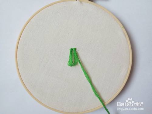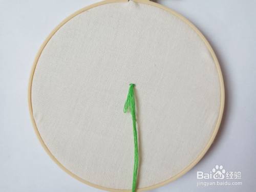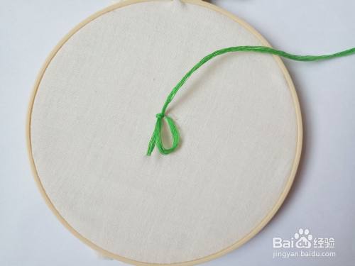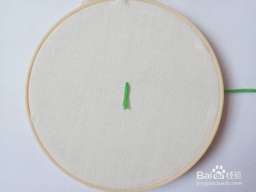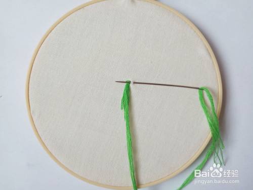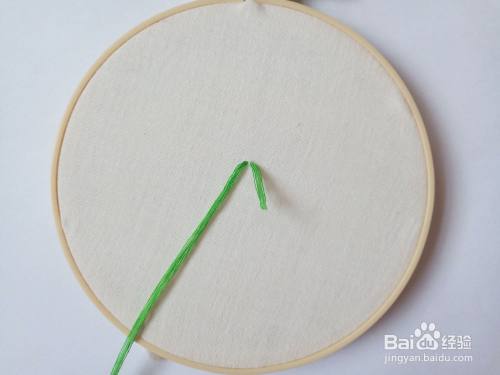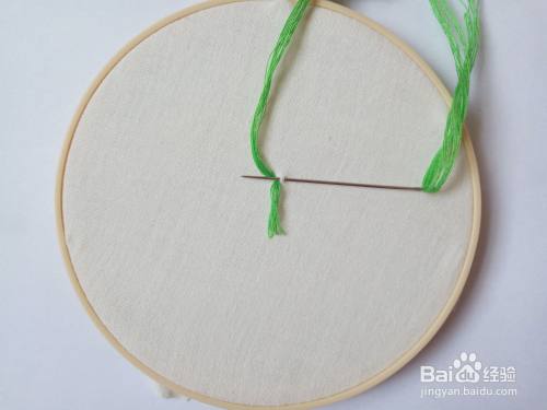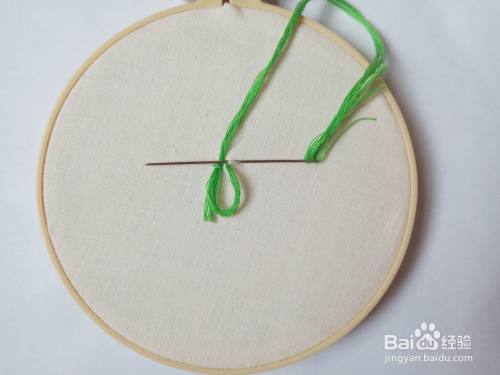 在右边入针,然后在第一针的位置出针,针脚要和第一针一样大,线要在上面,将线抽紧。