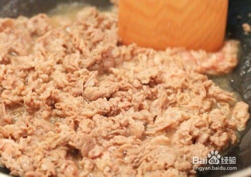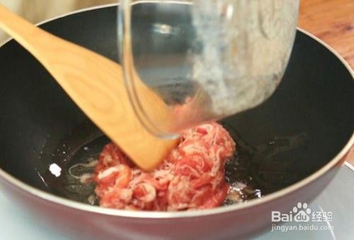 起锅倒油,烧热后,倒入腌好的羊肉,快速爆炒。