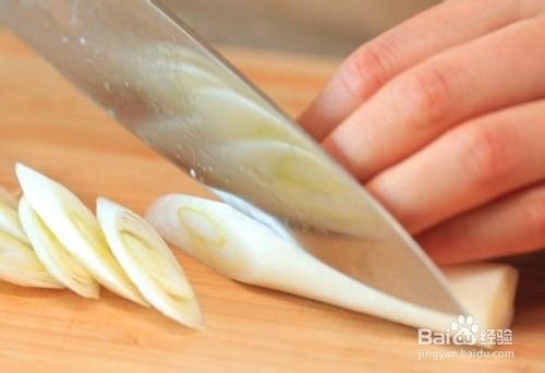 首先把大葱去掉外面一层皮,洗干净后葱白切成丝。