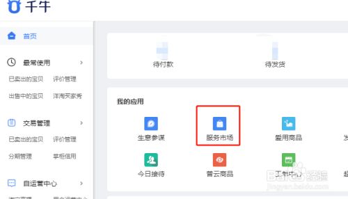 进入千牛卖家中心,如下图所示,点击进入运用市场。