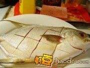 鲳鱼刮洗干净,鱼身两面划几刀好入味,周身蘸匀酱油。