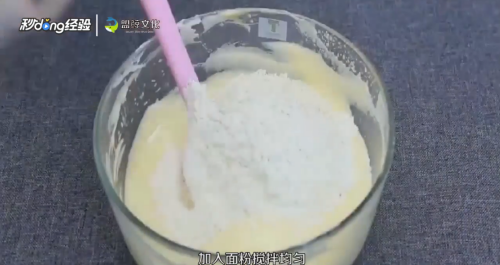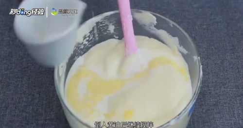 8锅底放一层蛋糕模,倒入蛋糕糊。