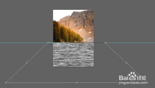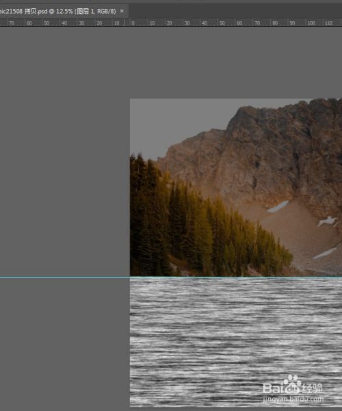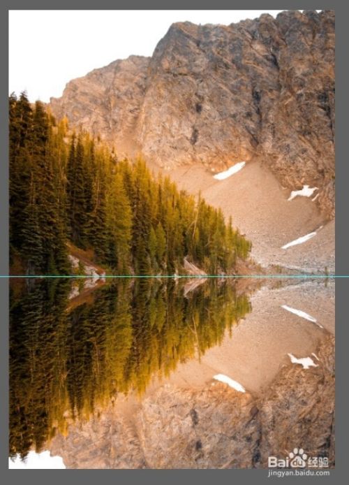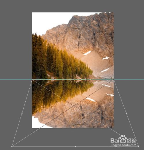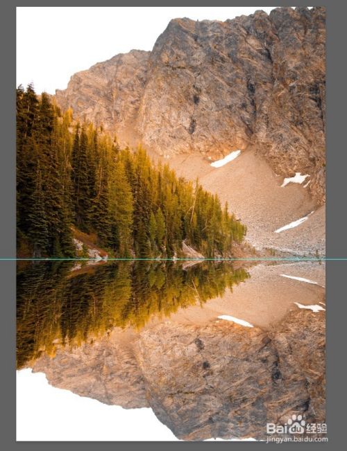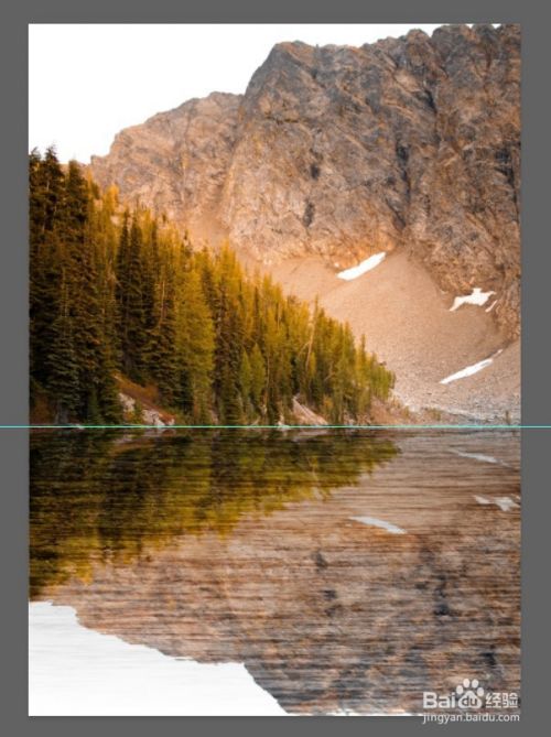 然后用裁切工具向下拉一截,留出一段空白位,做为倒影区,勾选对齐参考线,在图上新建参考线做为水平线,框选出水平线以上的部分,选区会自动对齐参考线,按CTRL+J复制一份副本做倒影。