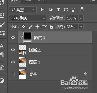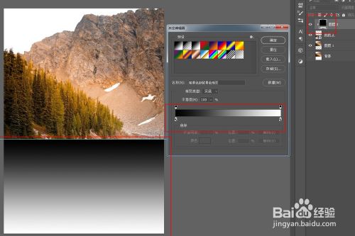 此时已看到倒影基本已做好,接下来就是将细节处理一下,让它看起来更真实。添加一个黑白渐变的图层,对倒影图层应用剪贴蒙版,将不透明度降低,混合模式改为正片叠底。