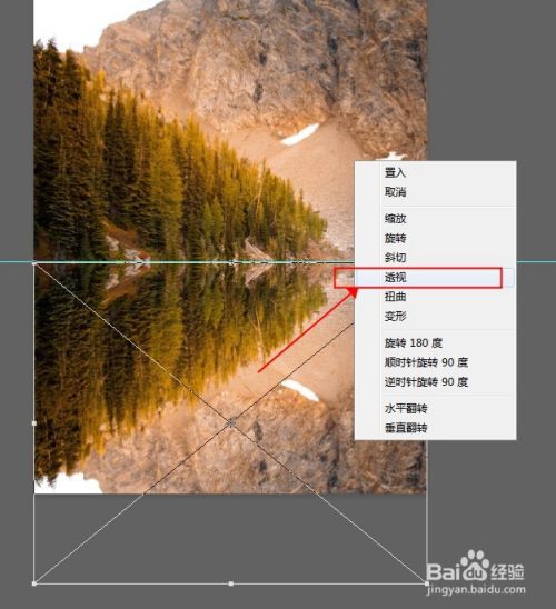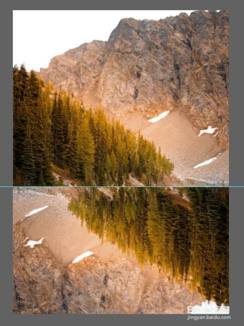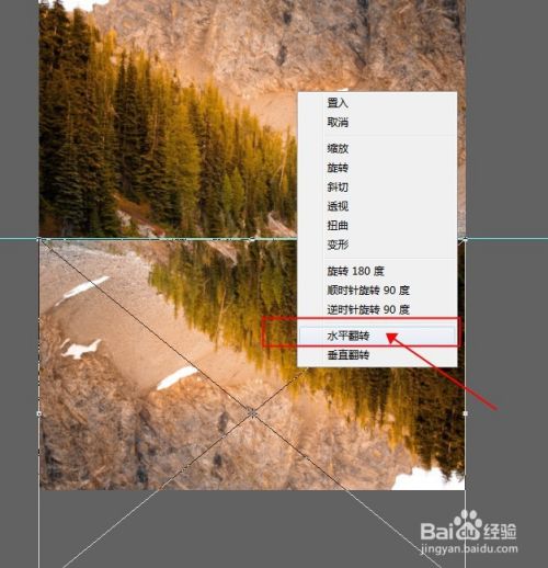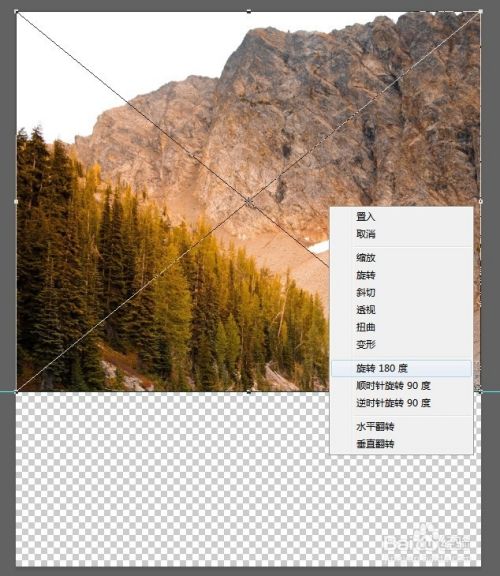 选中副本层,按ctrl+T,翻转180度,将图片倒置。