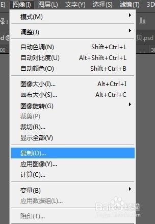 图像-复制,如图,勾选仅复制合并的图层。得到一个拷贝出来的PSD文件,将它保存。