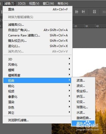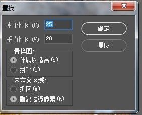 回到原来的文件,删除中性灰图层,选中倒影层,执行滤镜置换,置换文件选用刚才保存下的拷贝文件。