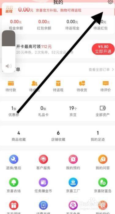 在个人中心页面,点击设置按钮,