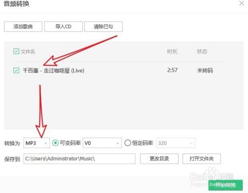 接下来设置好保存转换后文件的目录,最后点击“开始转换”按钮就可以了,这样QQ音乐会自动的转换文件到指定的格式。