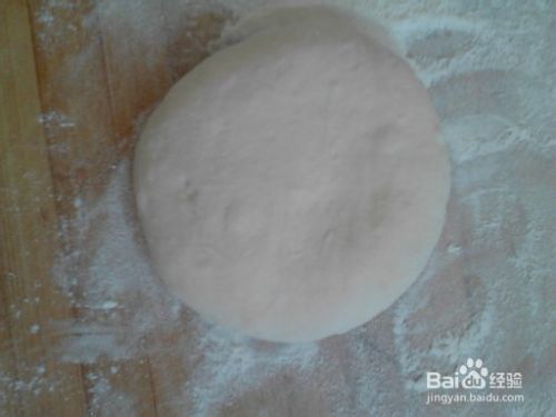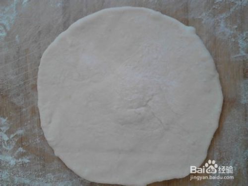 然后将小面团揉制成圆形的开始用擀面杖擀面皮。