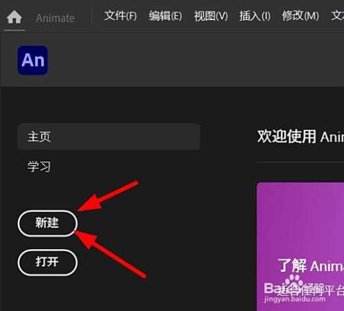 第一步,在Animate这里点击新建按钮,即可创建文档。