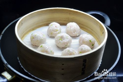 取适量的食材,然后左右手摔打几下形成一个萝卜丸子