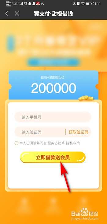 最后输入手机号码、验证码,点击立即借款就可以了。