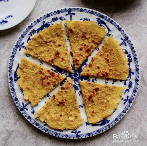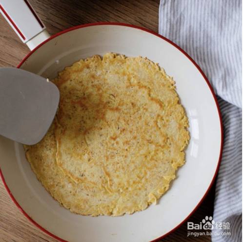平底锅预热,抹少量油,中小火将蛋饼煎至两面金黄即可