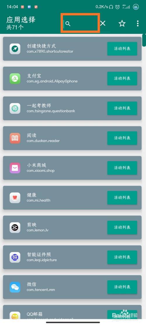 然后勾选“也搜索活动列表”和“也显示系统应用”