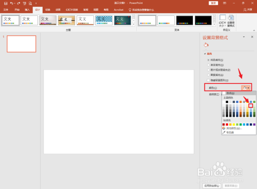 在PPT软件中,可以通过在设计界面,在设置背景格式那里,选择背景颜色,就可以完成实现。