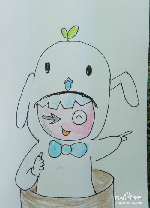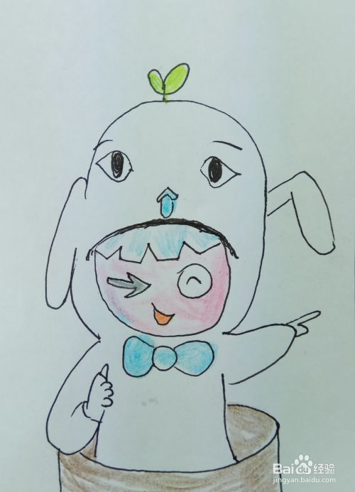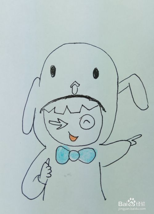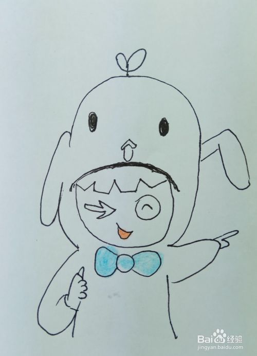 再画出演出服上小动物的眼睛,并且涂出背景色彩,简笔画就画好了,感兴趣的朋友也可以来尝试画一下。