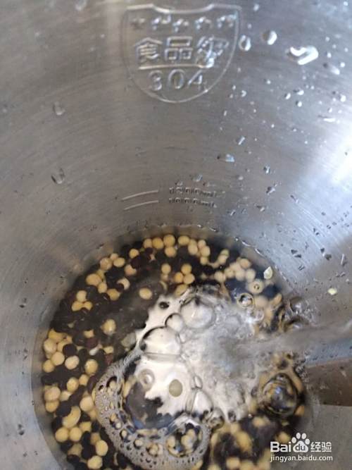 第二天把泡开的豆放进豆浆机。