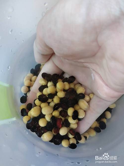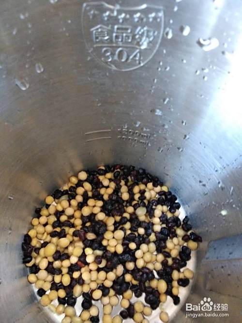 取适量的黄豆(黑豆),加水泡一个晚上,给第二天早上备用。(豆也可以不用泡哦,直接打也行,不过小编习惯泡一夜呢)