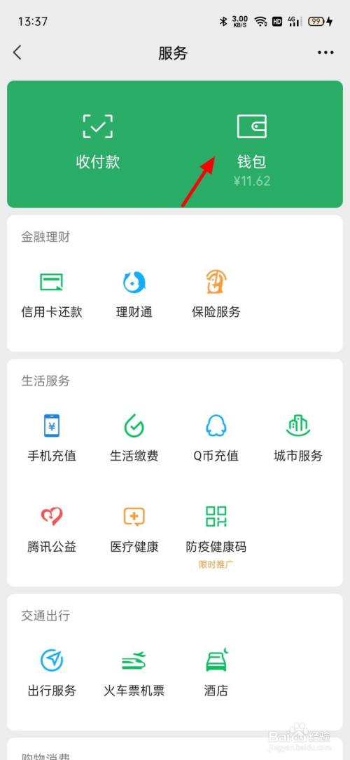 在服务页面,打开钱包。