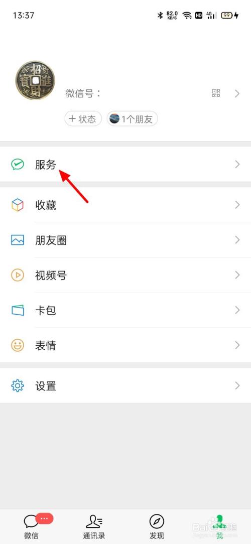在微信我页面,打开服务。