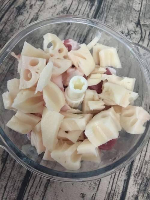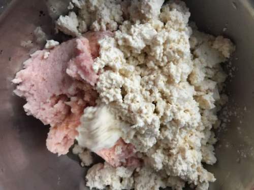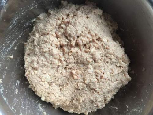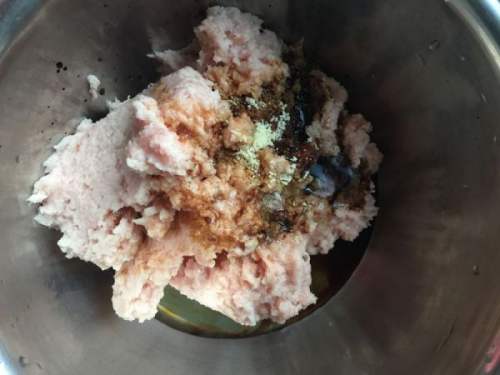 8肉馅内放入适量盐,胡椒粉,生姜粉,鸡粉,老抽,生抽,鸡蛋清一个,淀粉两勺