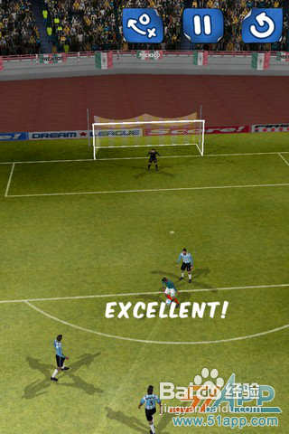 当完好的配合出现了射门的契机,就是考验临门一脚的时刻了!想一下历史上这一粒进球是怎么完成的?如果想不到可以点击画面右上第一个图标再看一次路线。起脚!球进了~~~然后画面就会反复重播刚才的绝妙配合和精彩射门了,跟电视上一样。