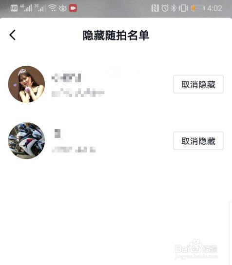 点击进入后,可以看到有哪些好友设置了隐藏随拍的权限。