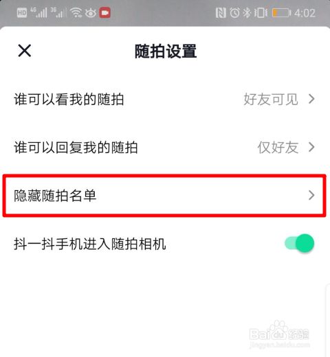 在随拍设置中,我们选择隐藏随拍名单的选项进入。