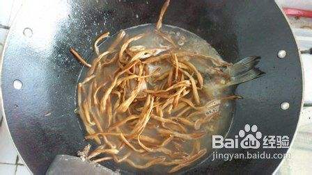 再多煮一下鲫鱼,放入泡好的黄花菜