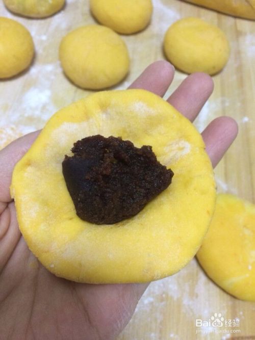 面团分成小块,揉成圆饼状面团分成小块,揉成圆饼状,面团要手按扁擀开,包上一勺豆沙馅像包包子一样包好收口,轻轻的整圆。
