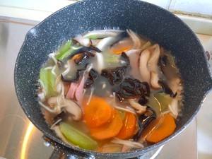 热锅冷油(猪油会比较香),葱姜蒜末爆香,下食材,裹油色后加水沒过食材即可,大火滚开,转小火,盖上盖子煮10分钟左右