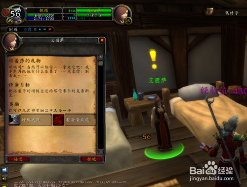 在奥特兰克山脉的达伦德农场找到一处房子(坐标40,16)2楼的“艾丽萨”处接的任务,需要把“塔蕾莎的项链”交给希尔斯布莱德丘陵塔伦米尔的“克鲁斯克”。