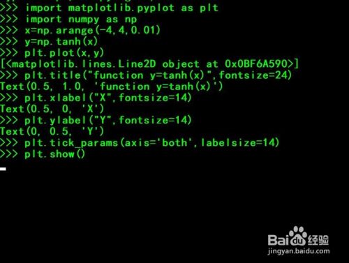 python是一个很有趣的语言,可以在命令行窗口运行。python中有很多功能强大的模块,这篇经验告诉你,如何利用python的matplotlib模块,绘制双曲正切函数y=tanh(x)的图像,其中tanh=[e^x-e^(-x)]/[e^x+e^(-x)]。
