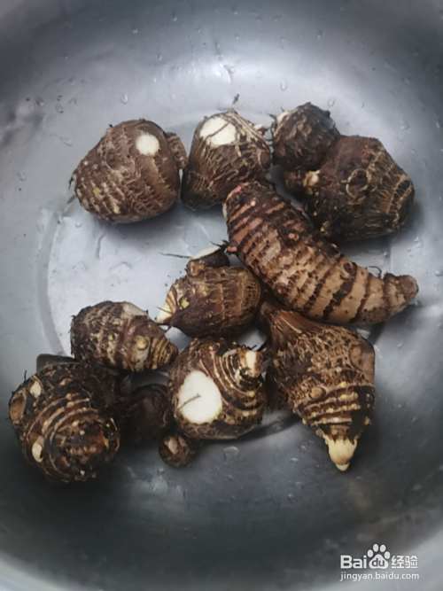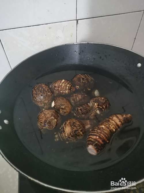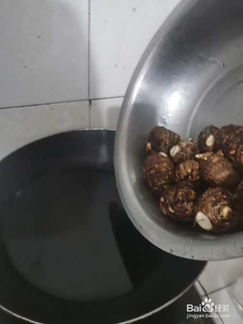 芋艿洗净放清水煮开一段时间。