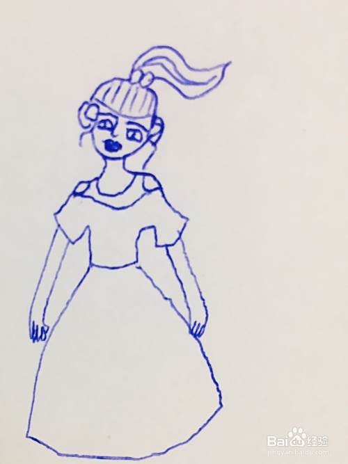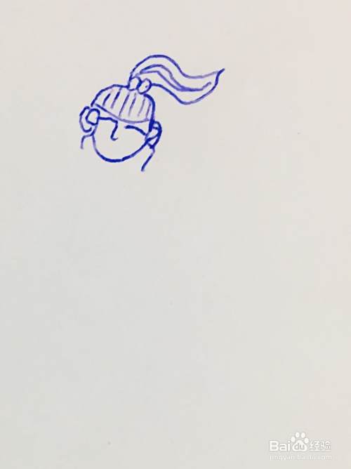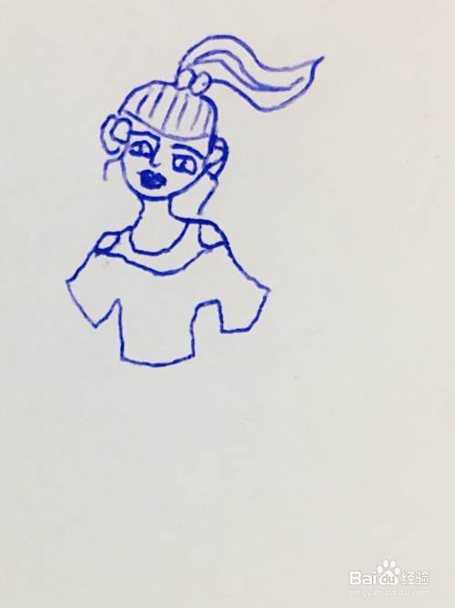 首先我们在白纸上,用笔画出一个圆形,作为女孩的头部。我们在头部添加五官轮廓。在头顶处画出女孩的发型。