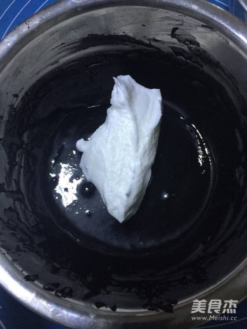 8取1/3蛋白到蛋黄糊中,翻拌均匀。
