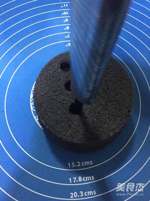 12蛋糕出炉后轻磕一下立马倒扣,待完全冷却后脱模,用去核器扎几个孔即可,没有去核器可以用吸管。