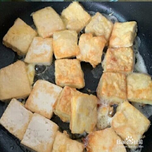 煎豆腐的时候不要急着翻面,等一面已经煎好凝固后再翻。