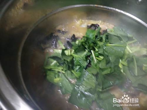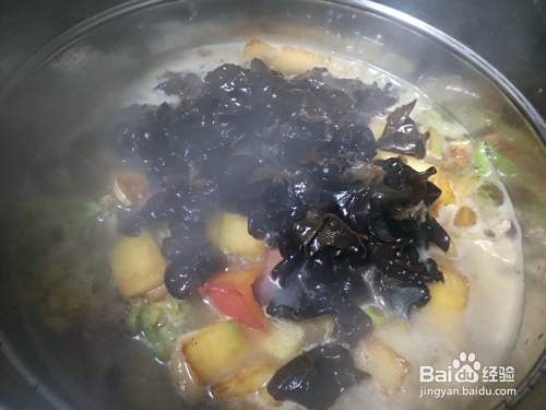 再加入洗干净的木耳(尽量撕一下,小点比较好煮熟)