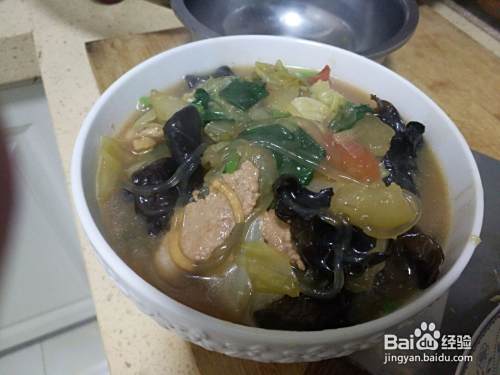 然后就是把需要的粉条、木耳提前泡一下,这样一会炖的时候容易熟,节省时间!