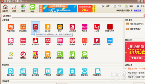 电商时代的到来,带动了很多网上的店铺的发展,在冲击传统购物方式的同时也改变了传统店铺经验模式,消费者的改变。也促进了京东的改变。同时也吸引了很多商家入驻京东这个平台,也出现了店铺的辅助软件,打单快递单软件。下面给大家讲一下易掌柜打印快递单的步骤。