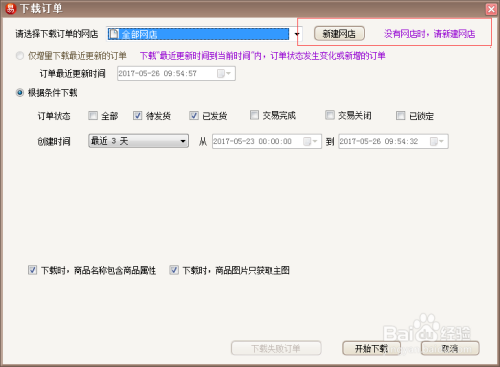 转到下载订单页面,在下载之前要先配置好店铺。点击新建网店。