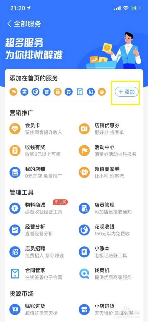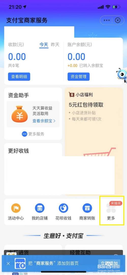 支付宝商家可以更换首页的服务,所以今天小编教大家如何更换。
