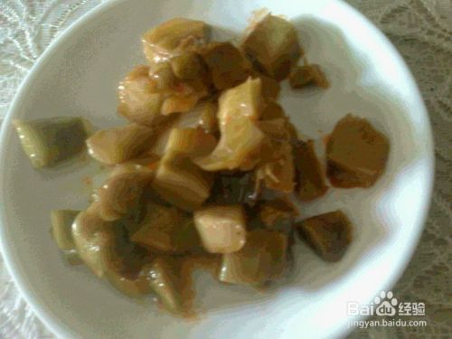 将切好的榨菜块放入菜盆中,用备好熟油和辣椒磨拌好在封闭后放上15天后就可以食用。